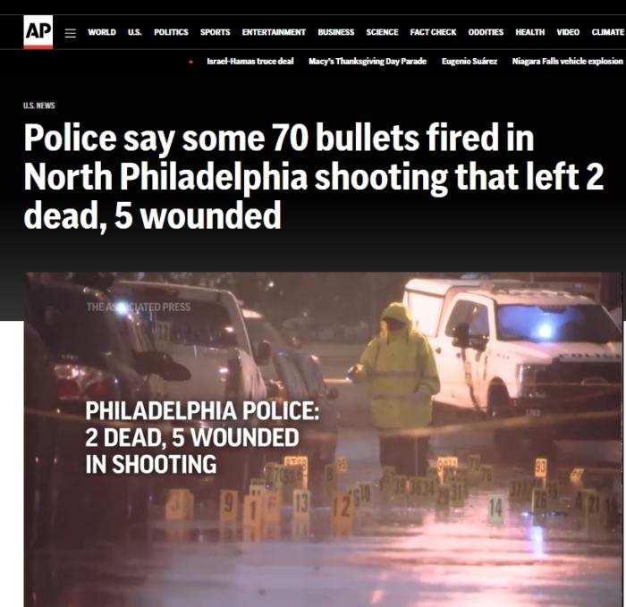 據(jù)報(bào)道,槍擊事件中的兩位死者均來自費(fèi)城,年齡分別為31歲和38歲。兩人均身受多處槍傷,在送入醫(yī)院后搶救無效死亡。