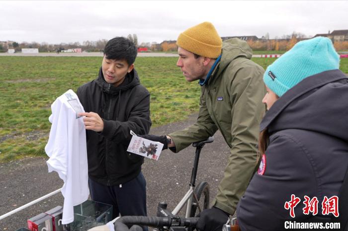 圖為選手展示其獲得“車(chē)騎將軍”主題系列T恤。德國(guó)漢文化藝術(shù)交流中心供圖
