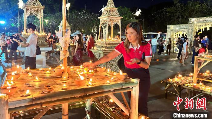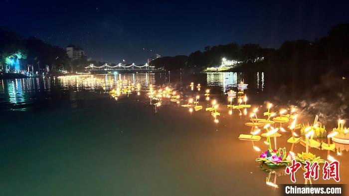 中新網(wǎng)曼谷11月28日電(李映民 趙婧楠)“月圓之夜,河水上漲,青年男女載歌載舞漂水燈,漂水燈,幸福將陪伴你我……”伴隨著悠揚的古典樂曲,泰國古城清邁的濱河邊,民眾穿著傳統(tǒng)服裝,手里捧著精心制作的水燈,放到河面上,隨著水流緩緩漂去……