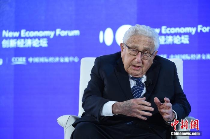 資料圖為2019年11月21日,2019年創(chuàng)新經(jīng)濟(jì)論壇在北京舉行,在“特別會議—對話:基辛格博士”環(huán)節(jié),美國前國務(wù)卿、創(chuàng)新經(jīng)濟(jì)論壇名譽(yù)主席亨利·基辛格(Henry Kissinger)出席并發(fā)言。