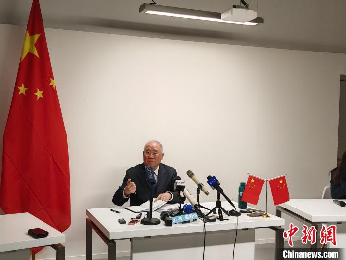 12月9日,阿聯酋迪拜,中國氣候變化事務特使解振華在新聞發(fā)布會上回應中外媒體的提問。 中新社記者 龐無忌 攝