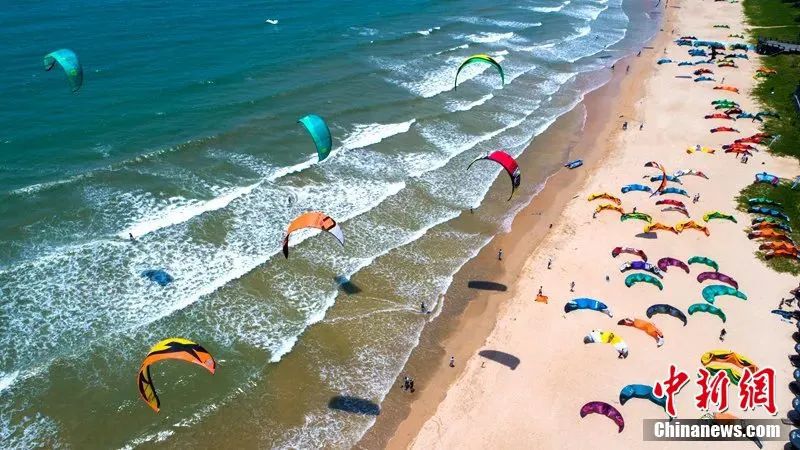圖為瓊海博鰲灣海域上顏色各異的風箏在海面上“起舞”。駱云飛 攝