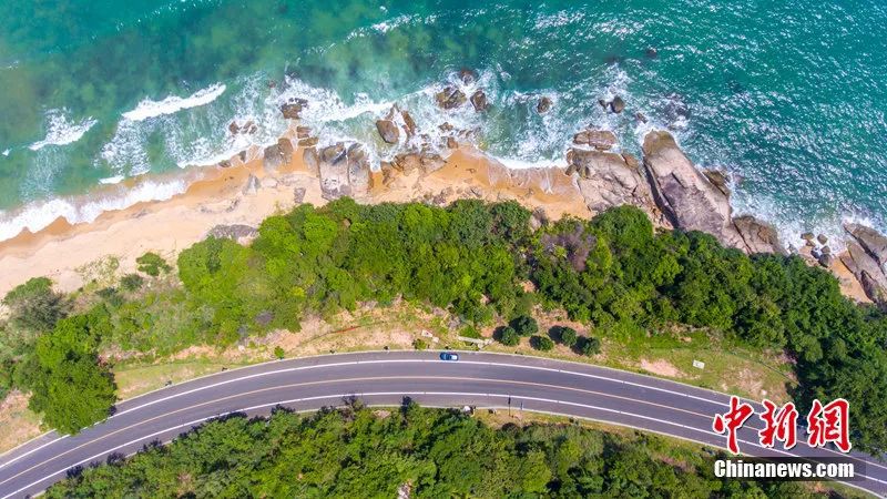 圖為航拍位于海南萬寧的濱海旅游公路。駱云飛 攝