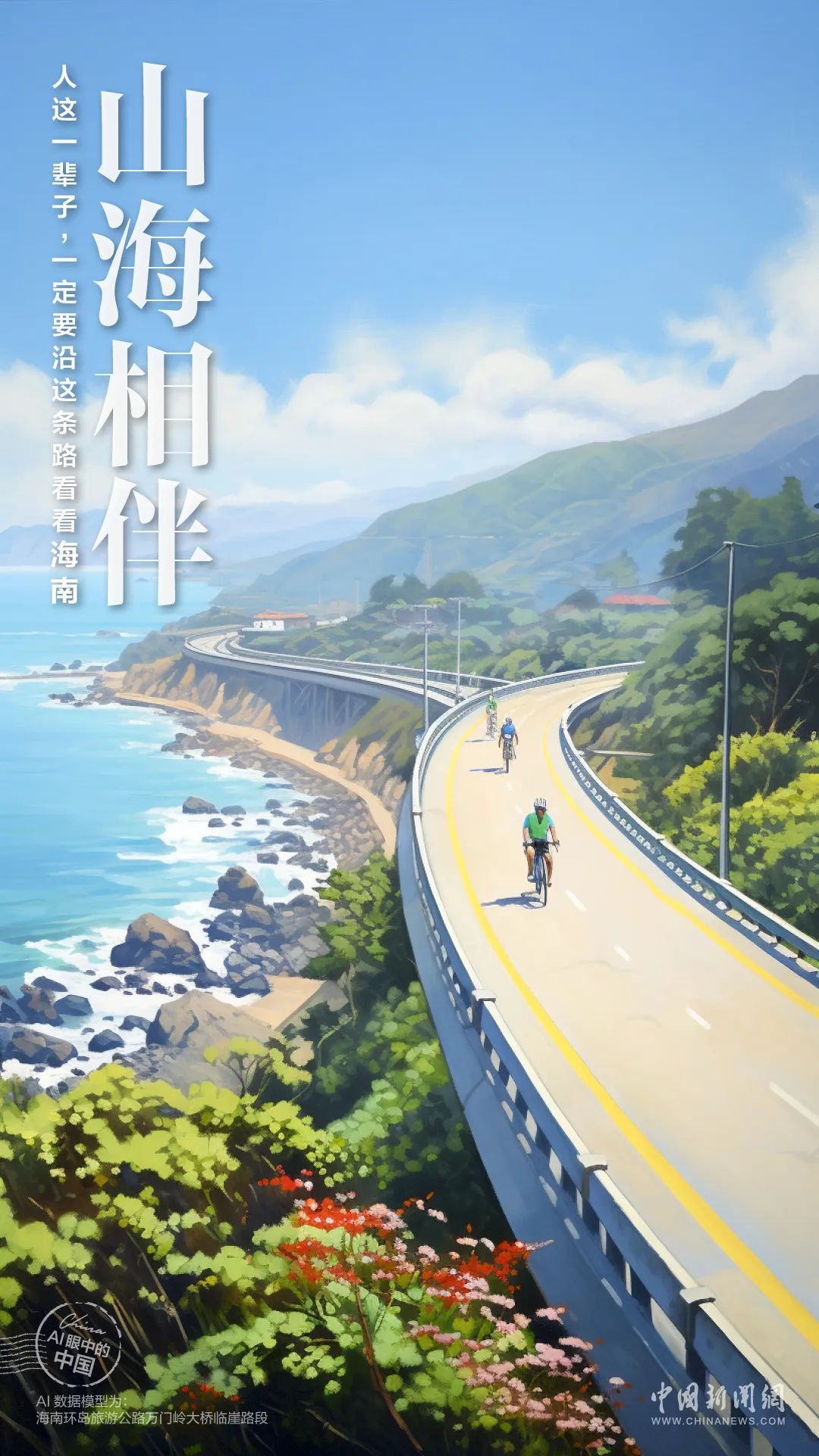 圖為海南環(huán)島旅游公路萬門嶺大橋臨崖路段吸引游客騎行打卡。楊師忠 攝