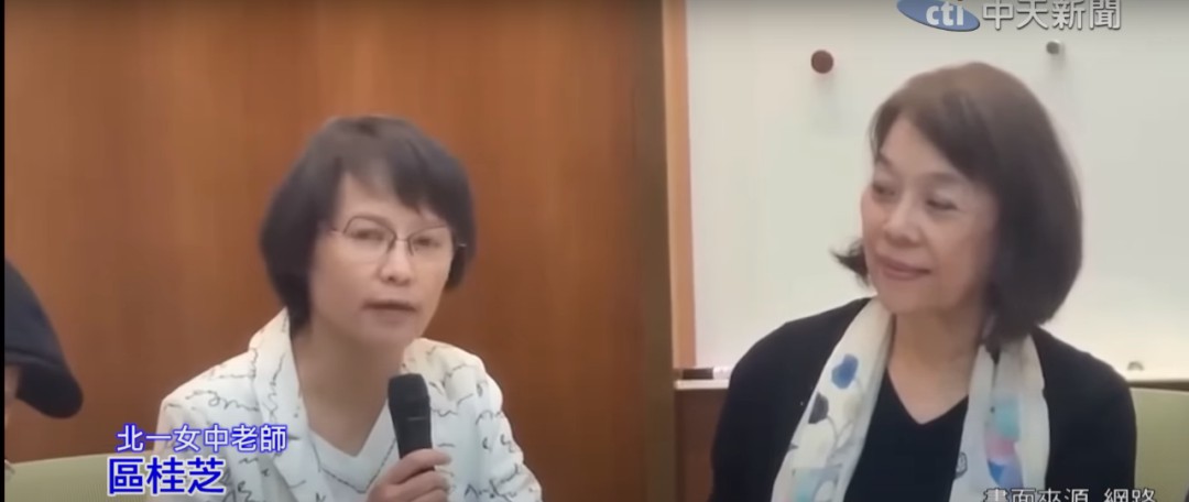 區(qū)桂枝老師在記者會上痛批“無恥”課綱。(圖源自臺灣中天新聞視頻截圖)