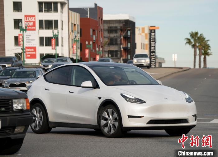 當(dāng)?shù)貢r(shí)間12月13日,特斯拉電動(dòng)汽車(chē)駛過(guò)美國(guó)加州圣馬特奧縣一處路口?!≈行律缬浾?劉關(guān)關(guān) 攝