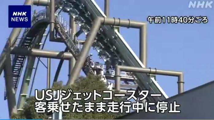 大阪環(huán)球影城過(guò)山車突發(fā)故障 乘客倒掛40米高空