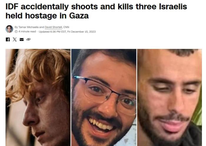 據(jù)美國(guó)有線電視新聞網(wǎng)(CNN)報(bào)道,以色列國(guó)防軍發(fā)言人赫格里在新聞發(fā)布會(huì)上表示,“在謝賈亞的戰(zhàn)斗中,以色列國(guó)防軍錯(cuò)誤地將三名以方人質(zhì)視為威脅。軍隊(duì)向其開(kāi)火,他們被打死?!?/p>