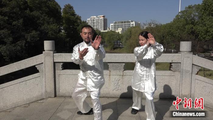美莎和常州大學(xué)體育學(xué)院碩士生導(dǎo)師 ,國家武術(shù)教練員一級(jí)裁判員許曉陽學(xué)習(xí)太極。葛勇 攝