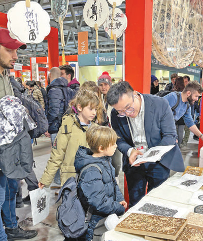 在“漢字文明 太極論道”主題活動中,中方工作人員向觀眾介紹了中國的傳統(tǒng)拓印文化(見圖,劉睿昕攝)。中國書法家現(xiàn)場寫就的春聯(lián)和福字讓觀眾倍感新奇。太極拳表演、中國風舞蹈、民族樂器演奏等特色節(jié)目也受到現(xiàn)場觀眾的歡迎。