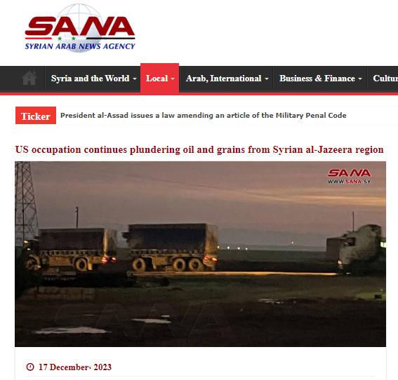報(bào)道還稱,這是“美國(guó)在敘非法駐軍掠奪敘利亞國(guó)家財(cái)富系統(tǒng)性計(jì)劃的一部分”。
