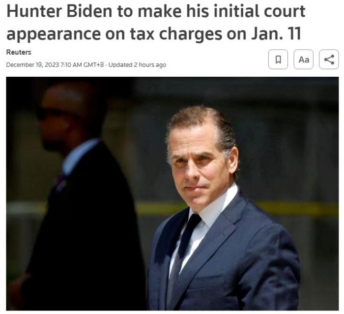 中新網(wǎng)12月19日電 據(jù)路透社18日報(bào)道,法庭文件顯示,美國總統(tǒng)喬·拜登的兒子亨特·拜登將于2024年1月11日就稅務(wù)指控,在洛杉磯首次出庭。