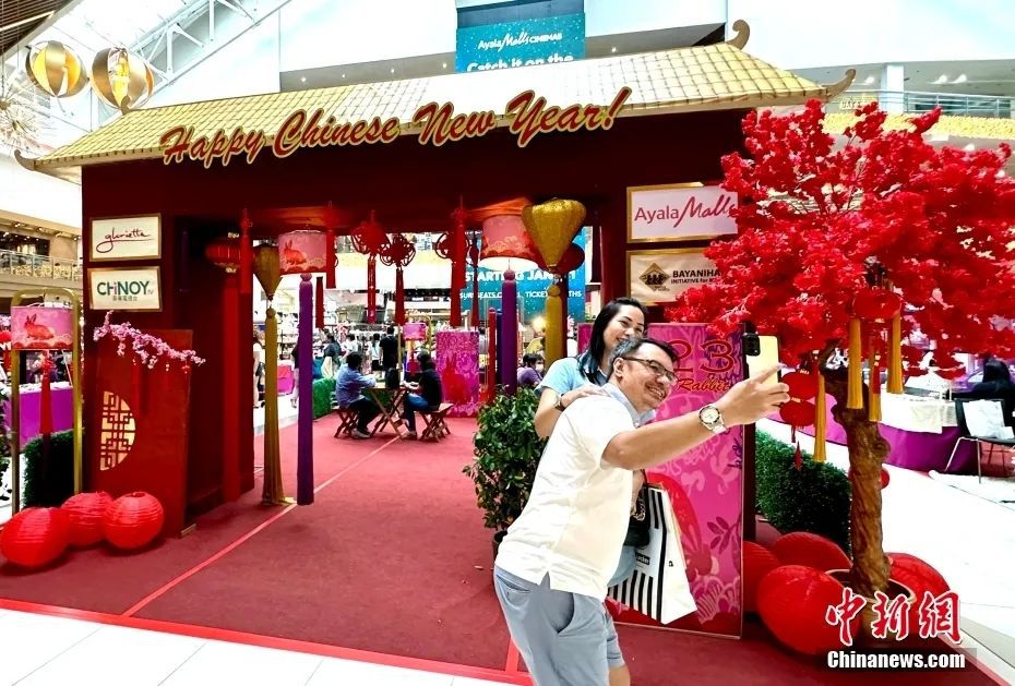 資料圖:當(dāng)?shù)貢r間1月21日,農(nóng)歷除夕,菲律賓大馬尼拉地區(qū)馬卡蒂市一商場內(nèi),市民在“新春集市”前拍照。近日,該商場搭建了“新春集市”“十二生肖展示區(qū)”等,吸引不少市民前來參觀、購物。中新社記者 張興龍 攝