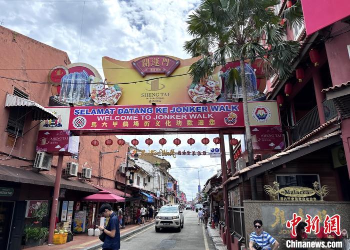 2023年6月拍攝的馬來(lái)西亞馬六甲雞場(chǎng)街入口。  中新社記者 陳悅 攝