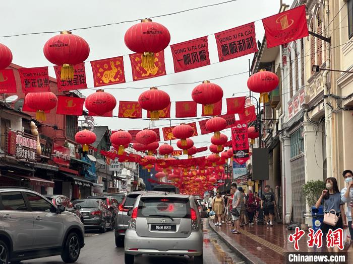 每逢中國(guó)農(nóng)歷新年,馬六甲雞場(chǎng)街都布置得極具年節(jié)喜慶氣氛。圖片攝于2023年1月24日?! ≈行律缬浾?陳悅 攝