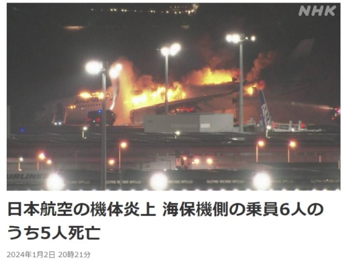 中新網(wǎng)1月2日電 據(jù)日本廣播協(xié)會(NHK)報(bào)道,東京警視廳的消息稱,與日航客機(jī)相撞的海上保安廳固定翼飛機(jī)上5人已確認(rèn)死亡,機(jī)長被確認(rèn)受重傷。