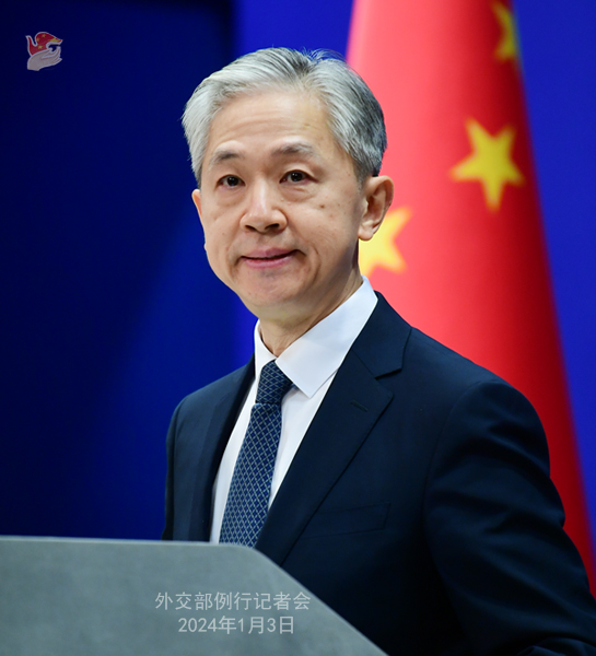 中新網(wǎng)北京1月3日電 (謝雁冰)中國外交部發(fā)言人汪文斌1月3日主持例行記者會(huì)。