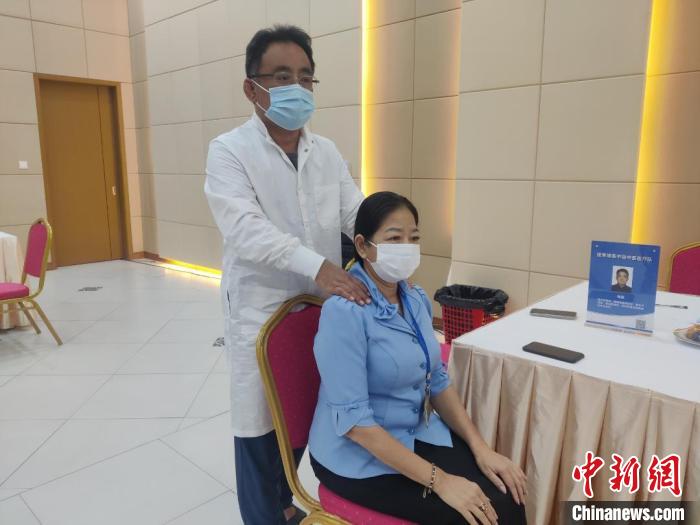 中新網(wǎng)金邊1月6日電 (黎海月)1月5日,中柬中醫(yī)藥中心、援柬埔寨中國中醫(yī)醫(yī)療隊(duì)赴柬埔寨國家銀行,為工作人員及家屬提供中醫(yī)義診服務(wù)。中國銀行金邊分行派員提供現(xiàn)場翻譯。