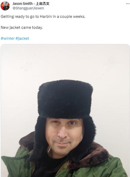 同樣對哈爾濱充滿興趣的還有美國人上官杰文。他近日在社交媒體上發(fā)布了一張自己頭戴帽子身穿大衣的照片,配文說,“準(zhǔn)備幾周后去哈爾濱。新外套送來了?!?/p>