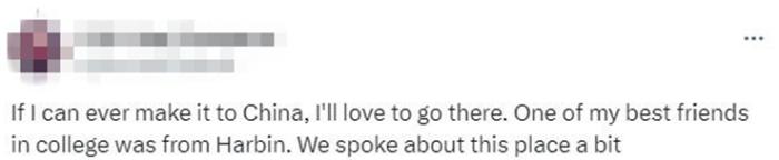 有網(wǎng)友表示,“如果我能去中國,我很想去那里。我大學(xué)時最好的一個朋友就是來自哈爾濱。我們聊過這個地方?!?/p>