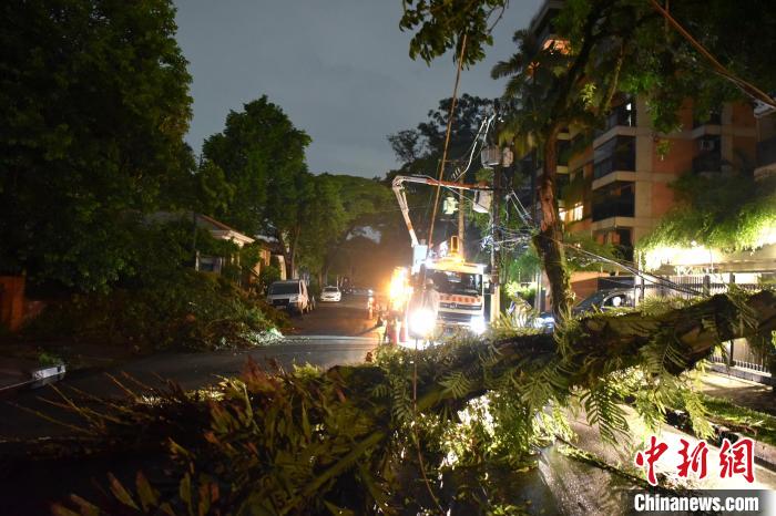 三輛電力公司救援車輛停在康賽桑新區(qū)一根電線桿下,架起強(qiáng)光燈,搶修變電箱和電纜。一位維修人員告訴中新社記者,他們已持續(xù)工作20多個(gè)小時(shí)了,“還需要再奮戰(zhàn)一夜”。