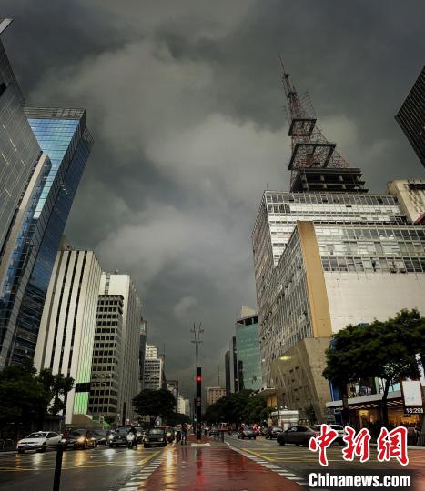 當(dāng)?shù)貢r(shí)間1月10日,巴西圣保羅保利斯塔大街,暴雨將至。中新社記者 林春茵 攝