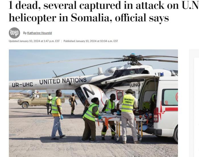 中新網(wǎng)1月11日電 美國(guó)《華盛頓郵報(bào)》援引消息人士稱,當(dāng)?shù)貢r(shí)間10日,聯(lián)合國(guó)一架直升機(jī)因故緊急迫降在加爾古杜德州后,被索馬里“青年黨”劫持。