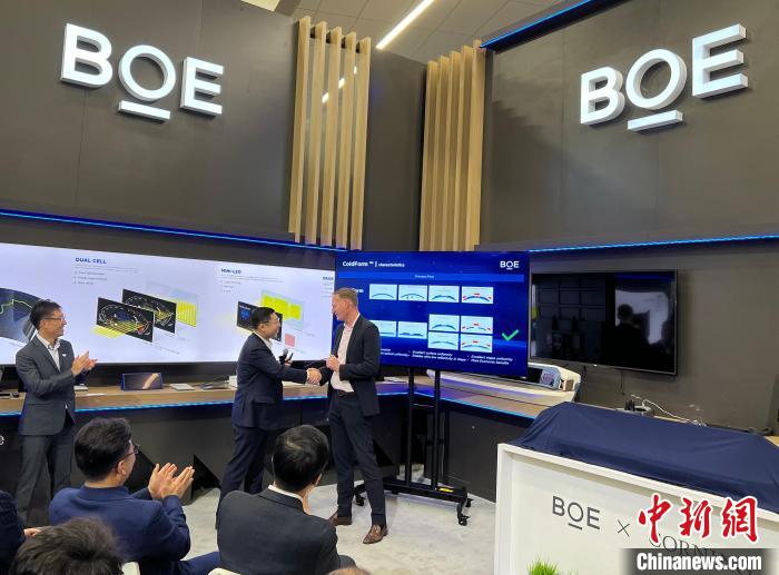 當?shù)貢r間1月9日,2024年美國消費電子展(CES)在內(nèi)華達州拉斯維加斯開幕。圖為中國參展企業(yè)京東方與美國康寧公司共同舉辦以“智慧顯示,綠色出行”為主題的新品發(fā)布會。 中新社記者 張朔 攝