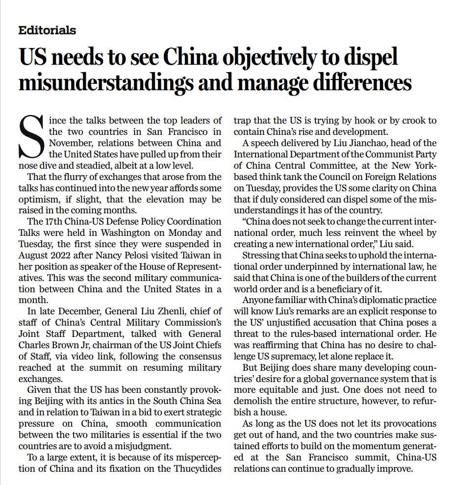 本文譯自《中國日報》1月12日社論