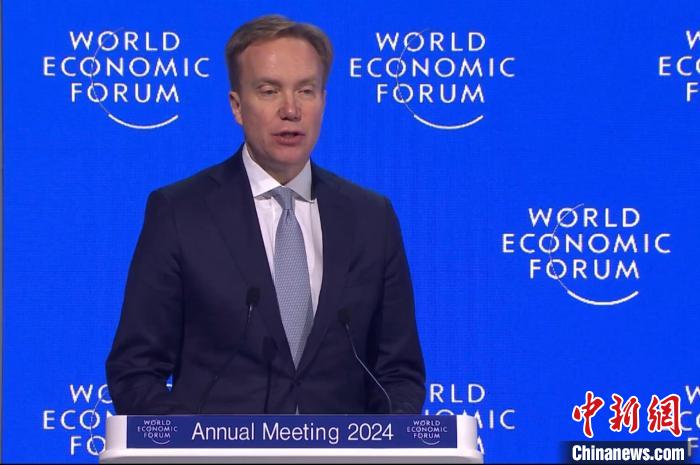當(dāng)?shù)貢r間1月19日,世界經(jīng)濟(jì)論壇2024年年會在瑞士達(dá)沃斯閉幕。圖為世界經(jīng)濟(jì)論壇總裁博爾格·布倫德發(fā)表閉幕致辭。中新社記者 馬秀秀 攝