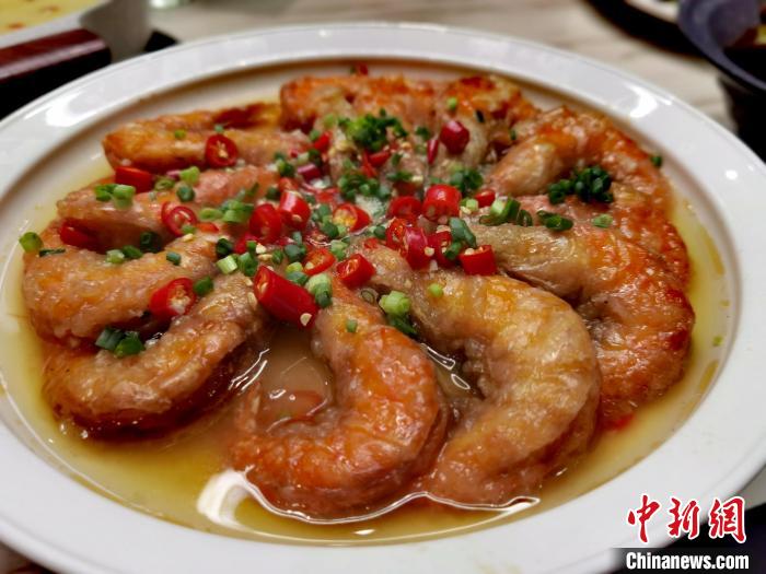 1月21日,臺青邱智良新餐館制作的辣子鮮蝦?!≈苎嗔?攝