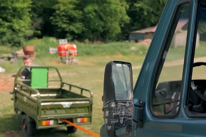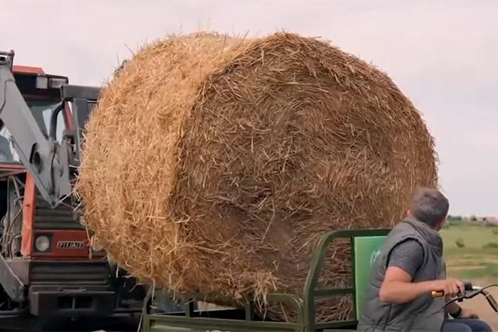 海外用戶使用“三蹦子”拉草垛。視頻截圖