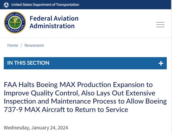 美國(guó)航管局暫停波音737MAX擴(kuò)大生產(chǎn) 要求徹底檢修