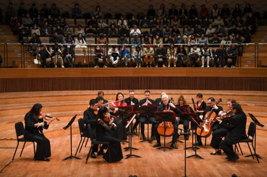 這是2023年11月16日拍攝的音樂會(huì)現(xiàn)場。當(dāng)日,“費(fèi)城之約”——費(fèi)城交響樂團(tuán)與蘇州交響樂團(tuán)室內(nèi)樂音樂會(huì)在江蘇蘇州舉行。新華社記者 李博 攝
