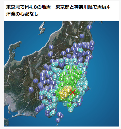 日本東京灣發(fā)生4.8級地震 震源深度80公里