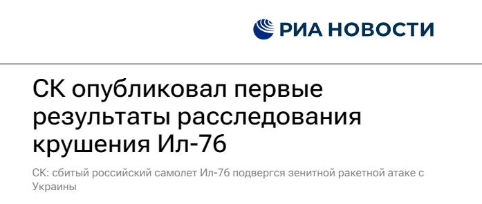 俄羅斯偵查委員會在聲明中表示,正在對機身碎片等物體進行專業(yè)鑒定,同時詢問事件目擊者并繼續(xù)進行現(xiàn)場調(diào)查。根據(jù)初步調(diào)查結(jié)果,可以確定伊爾-76運輸機遭到了來自烏克蘭境內(nèi)的防空導彈襲擊。