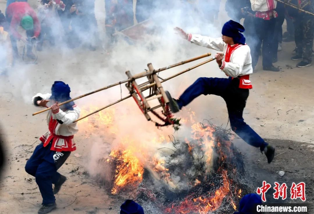 赤腳跨儺火。中新社記者 呂明 攝