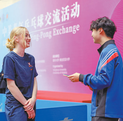 在中美建交45周年之際,北京市人民對(duì)外友好協(xié)會(huì)邀請(qǐng)美國(guó)弗吉尼亞大學(xué)代表團(tuán)訪問(wèn)北京,并聯(lián)合北京市體育局共同舉辦以“重走乒乓路·一起向未來(lái)”為主題的中美青年乒乓球交流活動(dòng)。在清華大學(xué)舉行的這場(chǎng)乒乓球友誼賽,便是此次交流活動(dòng)的主要內(nèi)容之一。盡管是臨時(shí)組隊(duì),但乒乓球迅速化解了兩國(guó)大學(xué)生初次見(jiàn)面的拘謹(jǐn),讓他們很快熟絡(luò)起來(lái),整場(chǎng)比賽也在輕松愉快的氛圍中順利結(jié)束。賽后,兩國(guó)大學(xué)生又聚在一起自拍留念,互留聯(lián)系方式。
