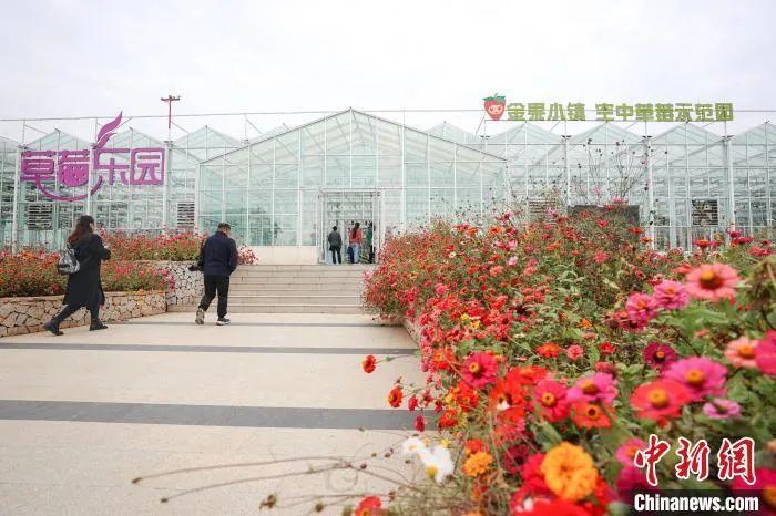 圖為南昌安義縣喬樂鄉(xiāng)的金果小鎮(zhèn)空中草莓示范園,游客走進園內參觀。劉力鑫 攝
