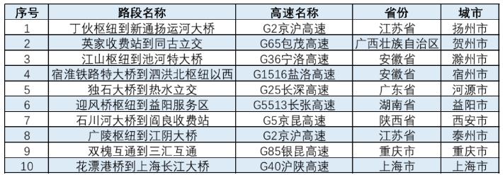 春節(jié)期間,全國(guó)高速公路預(yù)計(jì)易發(fā)生擁堵緩行的路段,如下表所示。