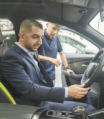 埃及首都開羅,熱鬧繁華的穆罕迪森區(qū),阿拉伯國家聯(lián)盟大街上車水馬龍。走進一家汽車展銷店,一眾知名品牌汽車中,來自中國的新能源汽車格外引人注目。