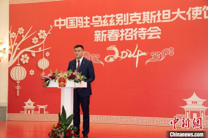 2月1日,烏茲別克斯坦塔什干,中國(guó)駐烏使館舉辦“溫暖迎春·共慶中國(guó)年” 新春招待會(huì),大使于駿出席并致辭?! ≈袊?guó)駐烏使館供圖