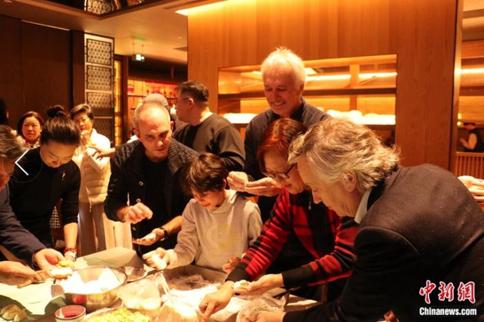外國(guó)友人包餃子體驗(yàn)活動(dòng)。中新網(wǎng)黃方攝