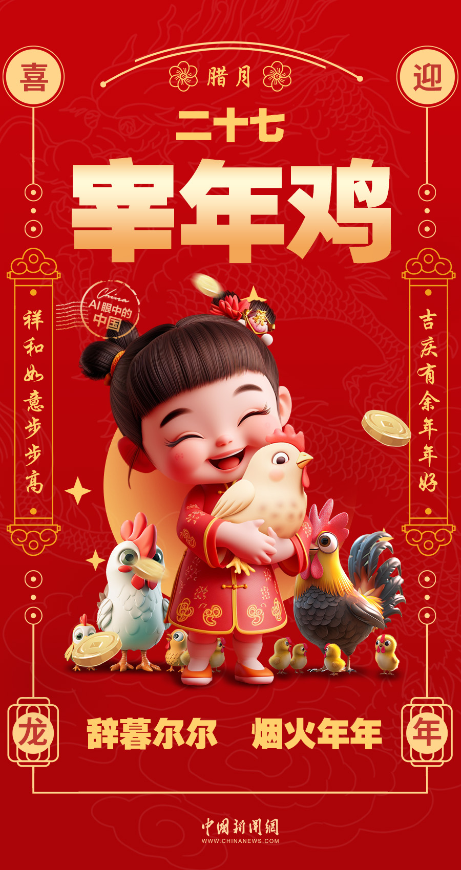 【龍騰九州 福暖四季】AI眼中的中國(guó)|臘月二十七,宰年雞