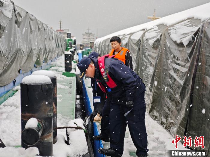 長江航運工作人員風雪中保障渡運安全。交通運輸部長江航務管理局供圖