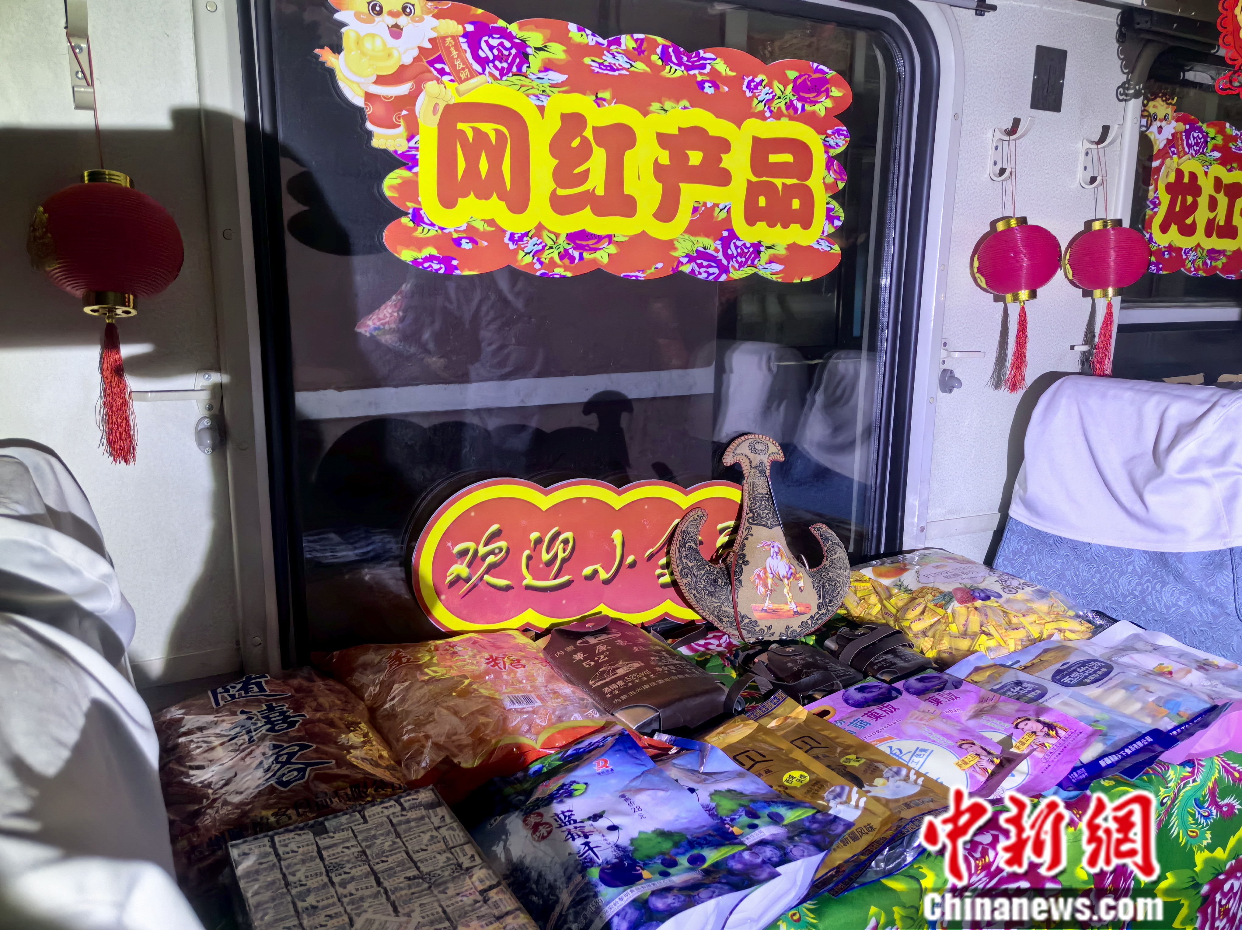 春節(jié)前,走進(jìn)4045次列車車廂,映入眼簾的是火紅的燈籠、拉花,龍年春節(jié)氛圍一下被拉滿,行走的“列車大集”上更是擺滿了地道的東北年貨,讓人不禁感嘆:春運路上也可以買特色年貨了!