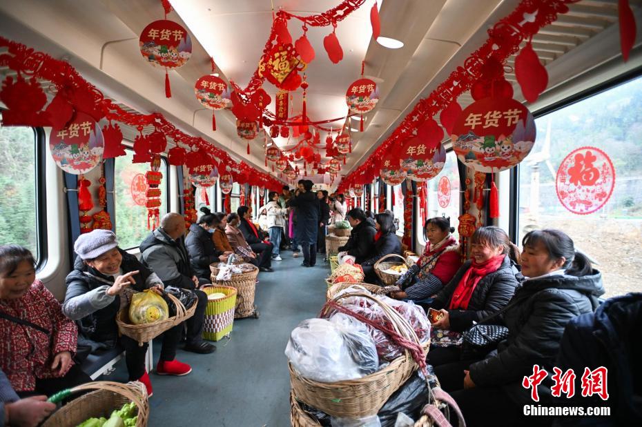 2月5日,5630次列車上開設(shè)“年貨集市”,方便沿途百姓采買年貨。 中新網(wǎng)記者 何蓬磊 攝
