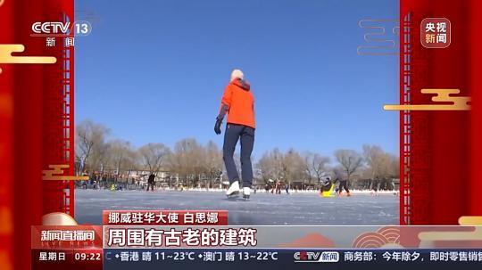 挪威駐華大使 白思娜:挪威人我們特別喜歡冬天,去爬山、滑冰、滑雪。我也很喜歡在這滑冰,因?yàn)檫@里是城市的中心,周?chē)泄爬系慕ㄖ?,很多人在一起滑冰?/p>