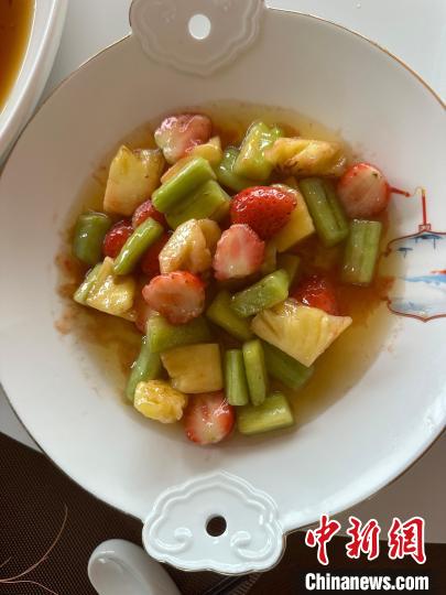 圖為用草莓、鳳梨炒制的“莓麗蔬果園”。(受訪者供圖)