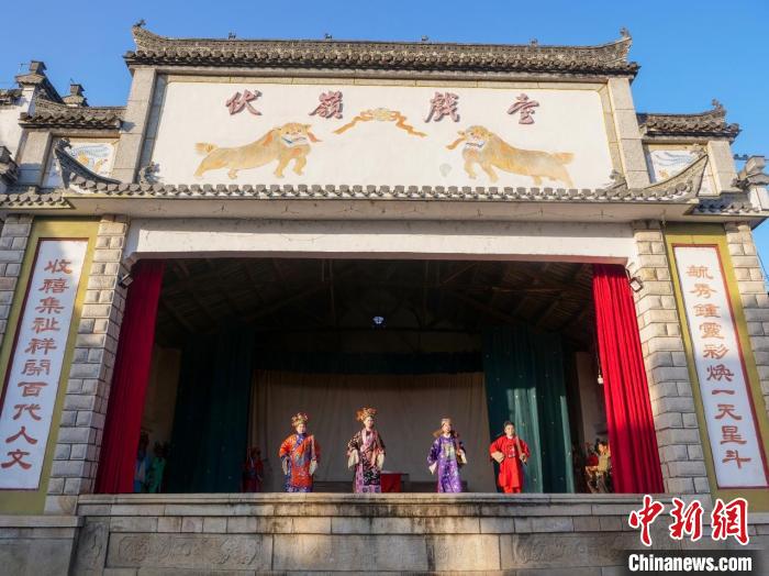 資料圖:安徽省宣城市績(jī)溪縣伏嶺鎮(zhèn),徽戲童子班的演員們?cè)趹蚺_(tái)上表演。 張雨生 攝